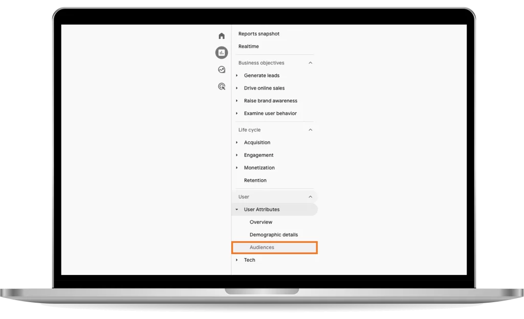 This report functions like most others in GA4. You can find it under Reports -> Users -> Attributes -> Audiences.