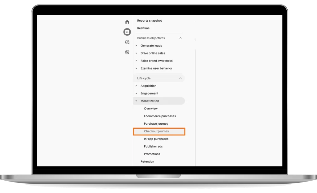 This report can be found in Reports -> Life Cycle -> Monetization -> Checkout journey in your GA4 property. Here, you can see the steps towards a checkout that users take. It shows the number of people who reached each step and the percentage.