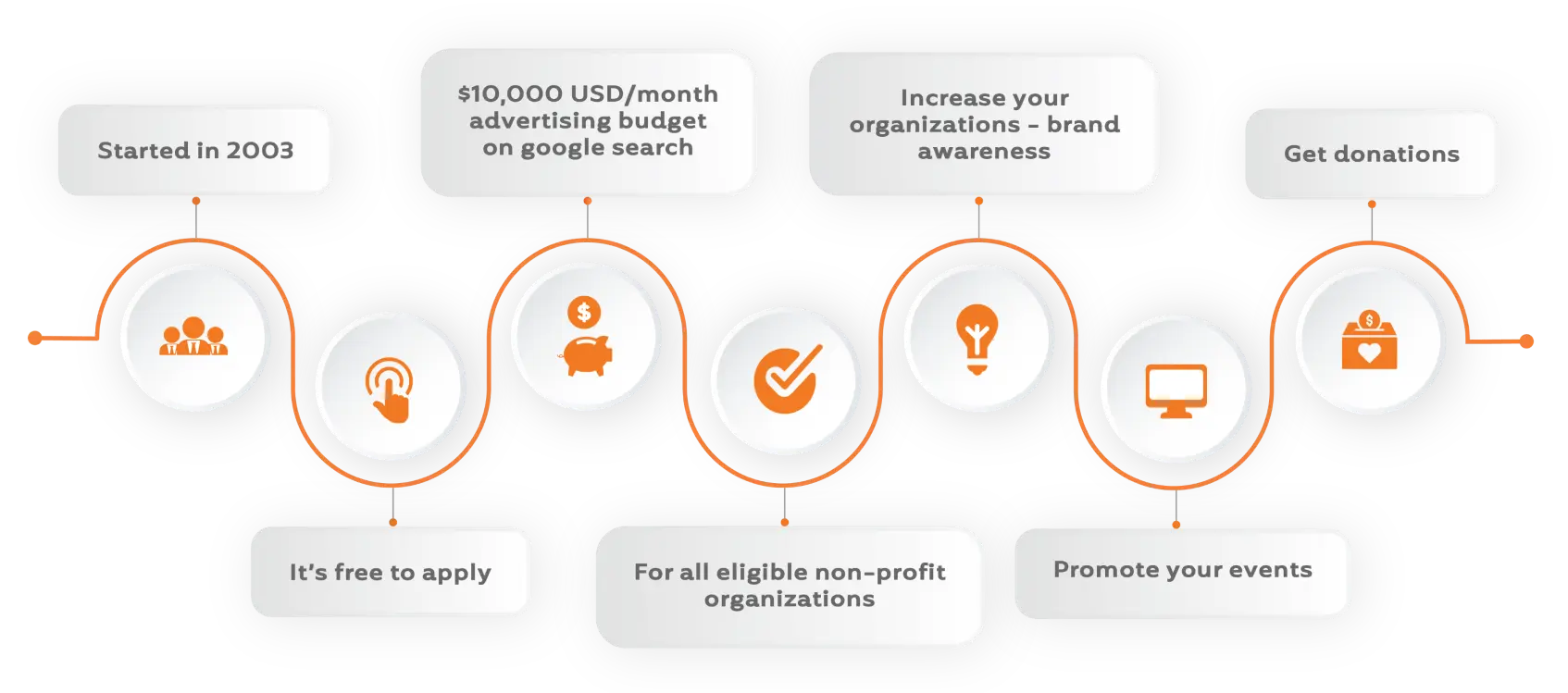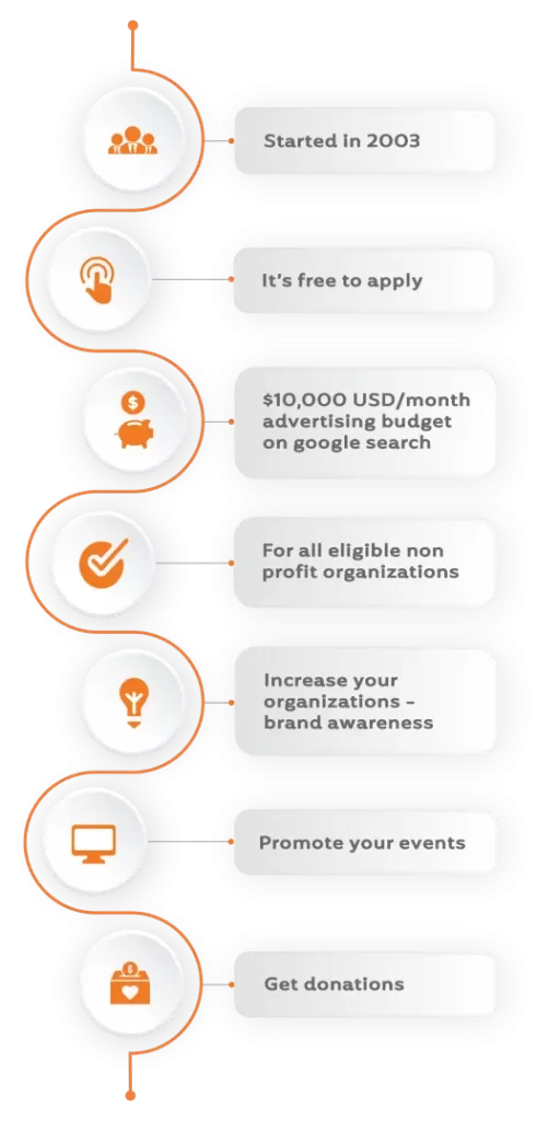 Google Ad Grants works just like Google Ads online advertising, by displaying your message to people who are searching for nonprofits like yours. If you’re a qualifying nonprofit, you’ll receive $10,000 USD in in-kind Google Ads advertising every month.