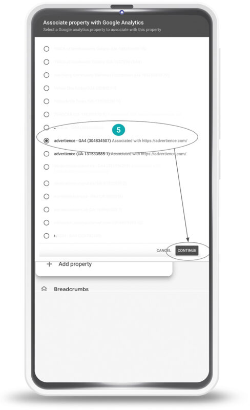Select the website you want to link to Google Analytics 4 (GA4).