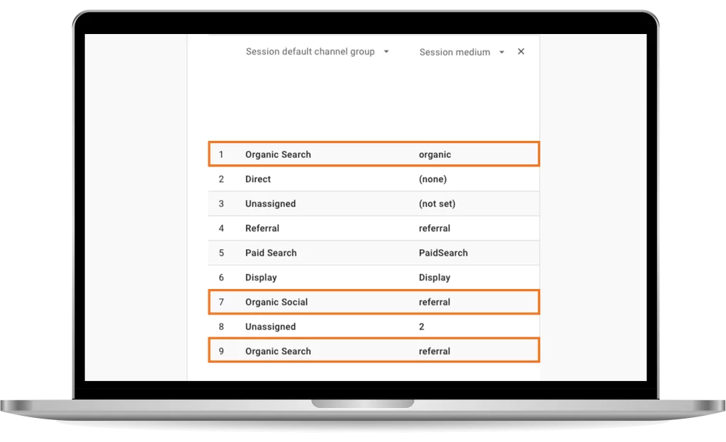 This segments the table and now groups like ‘Organic Search’ in the default column have three entries: two for referral, and one for organic.