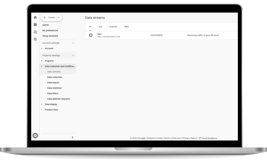 Your measurement ID is how you tell your various websites or programs what GA4 property to send data to. It’s located in the Data collection and modification widget, under data streams. All your streams will be listed here, and clicking on them will show you a page that contains, among other things, the measurement ID.